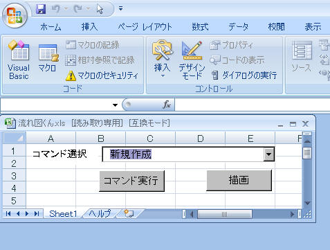 流れ図を新規に作成する場合には、ここをクリックする。流れ図くんで使える命令すべてがテンプレートとして書かれているので、適宜書き換えてコードを記述すると便利である。