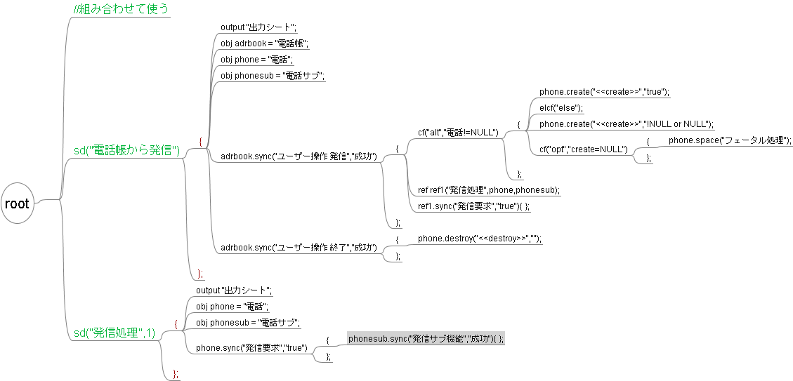 書式:obj/ref宣言名.sync("説明","戻り値説明"[,定数]){・・・};