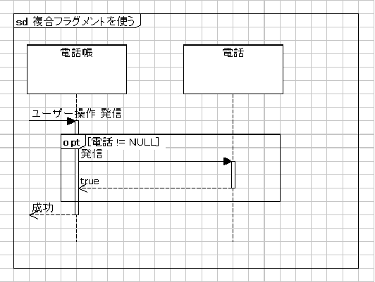 cf("opt","電話 != NULL"){//★複合フラグメント「opt」を使う