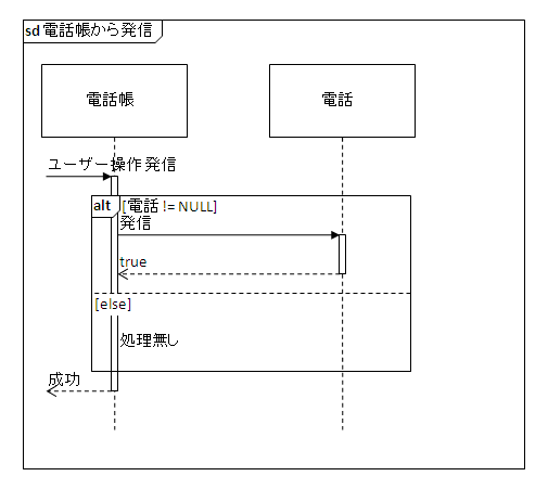 名前obj/ref 宣言名.space概要書式1obj/ref 宣言名.space("文字列"); 上記の書式にて記載 説明用途1:「space("")」とすることでシーケンス図に改行を追加できるので図の微調整に利用する。 用途2:「space("処理内容")」のように、文字列に処理の内容を記載することで、シーケンス図に説明文を記載できる。